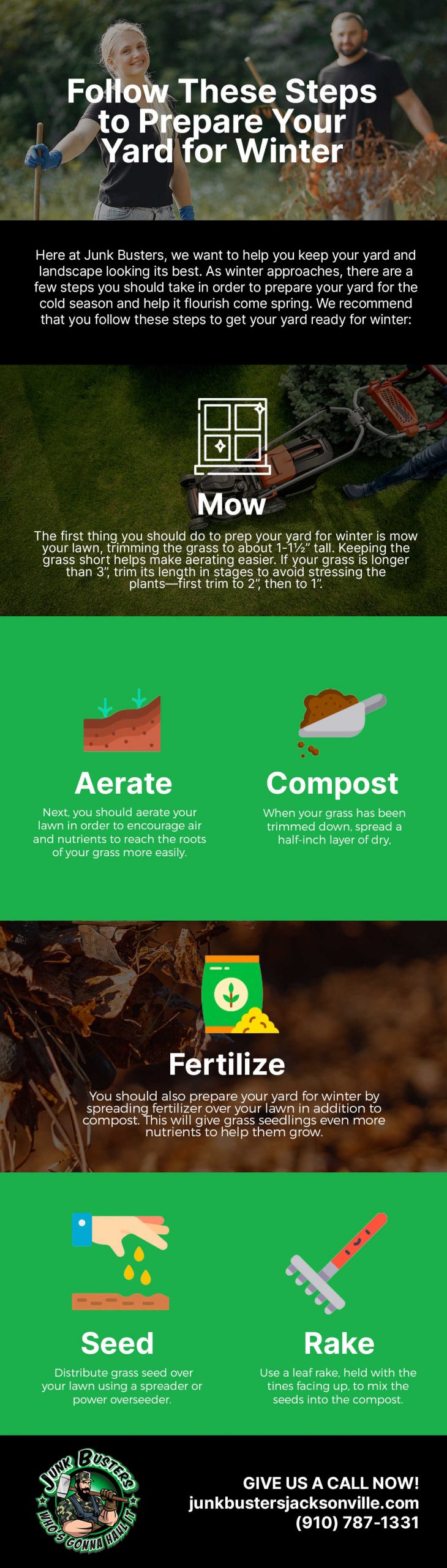 At Junk Busters, we offer fall cleanup services in Jacksonville, Swansboro, Sneads Ferry, Topsail, Surf City, Holly Ridge, Richlands, New Bern, Kinston, Hubert, Camp Lejeune, Maple Hill, Emerald Isle, Wilmington, and Hampstead, North Carolina.